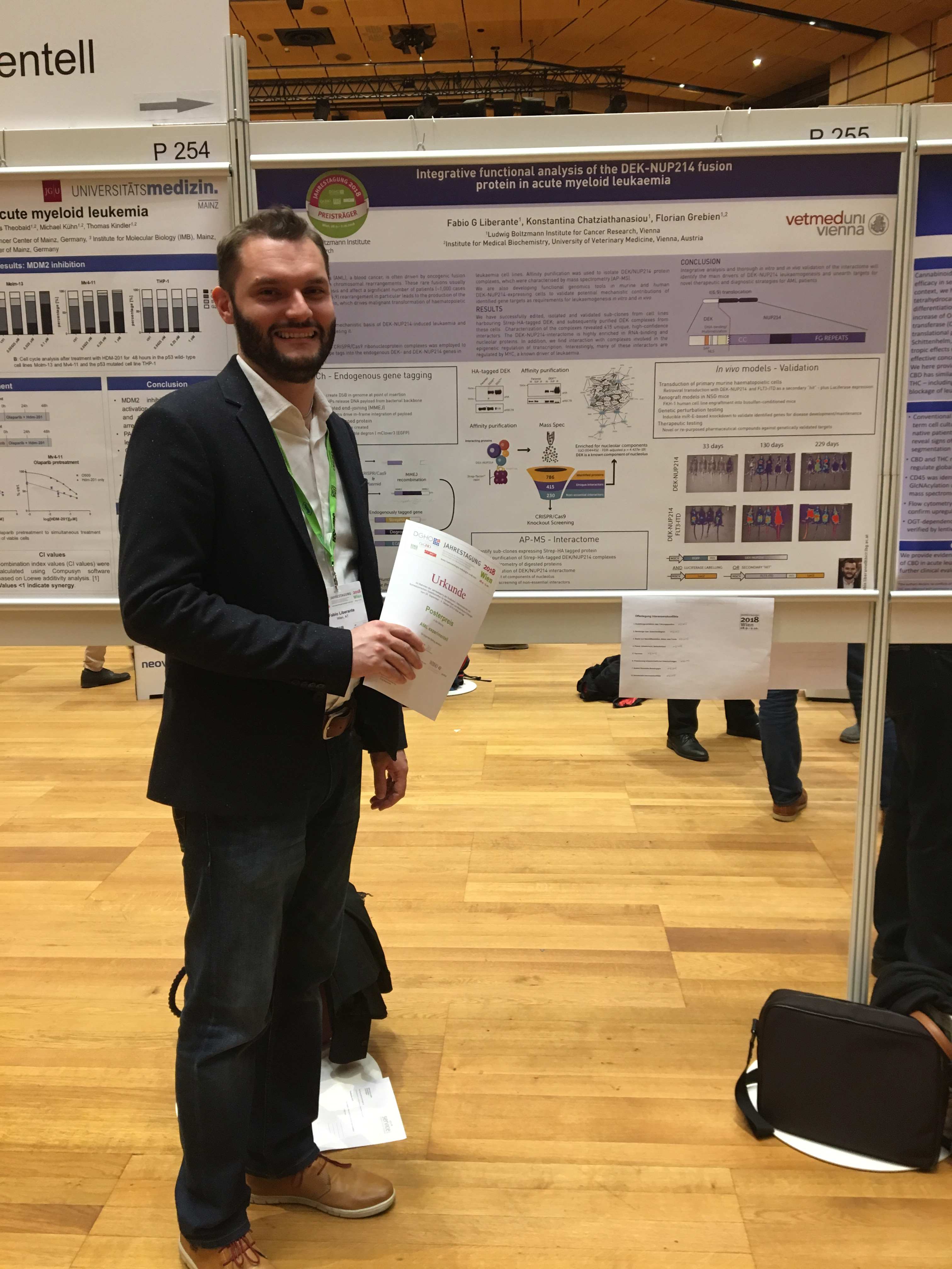 29.09.2018: The FG group at the Jahrestagung der Deutschen, Österreichischen und Schweizerischen Gesellschaften für Hämatologie und Medizinische Onkologie in Vienna. Three great talks and one poster prize. Great job everybody!