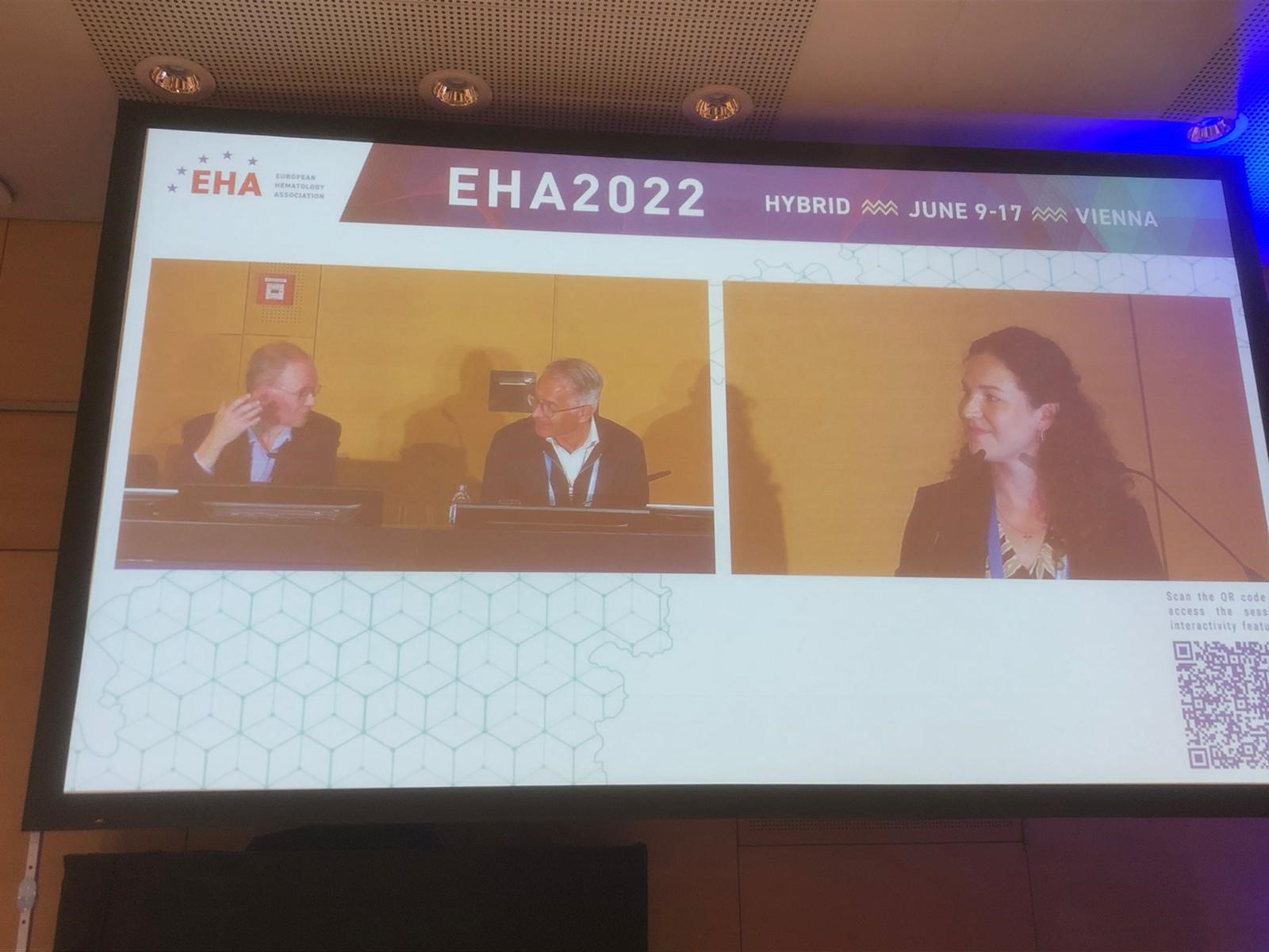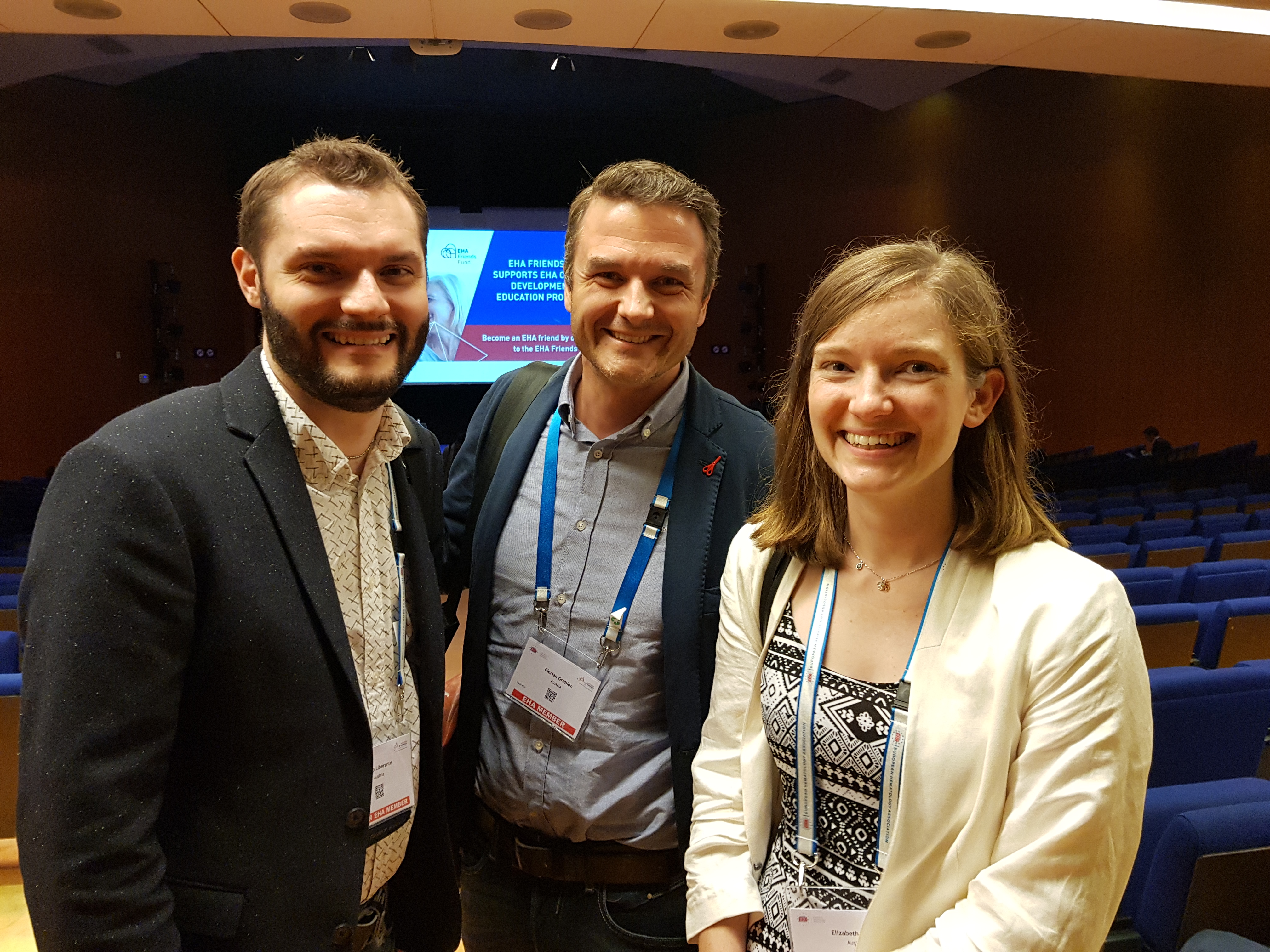 15.06.2019: Fabio, Florian and Lisi after her poster pitch at the European Hematology Association (EHA) Congress 2019 in Amsterdam.