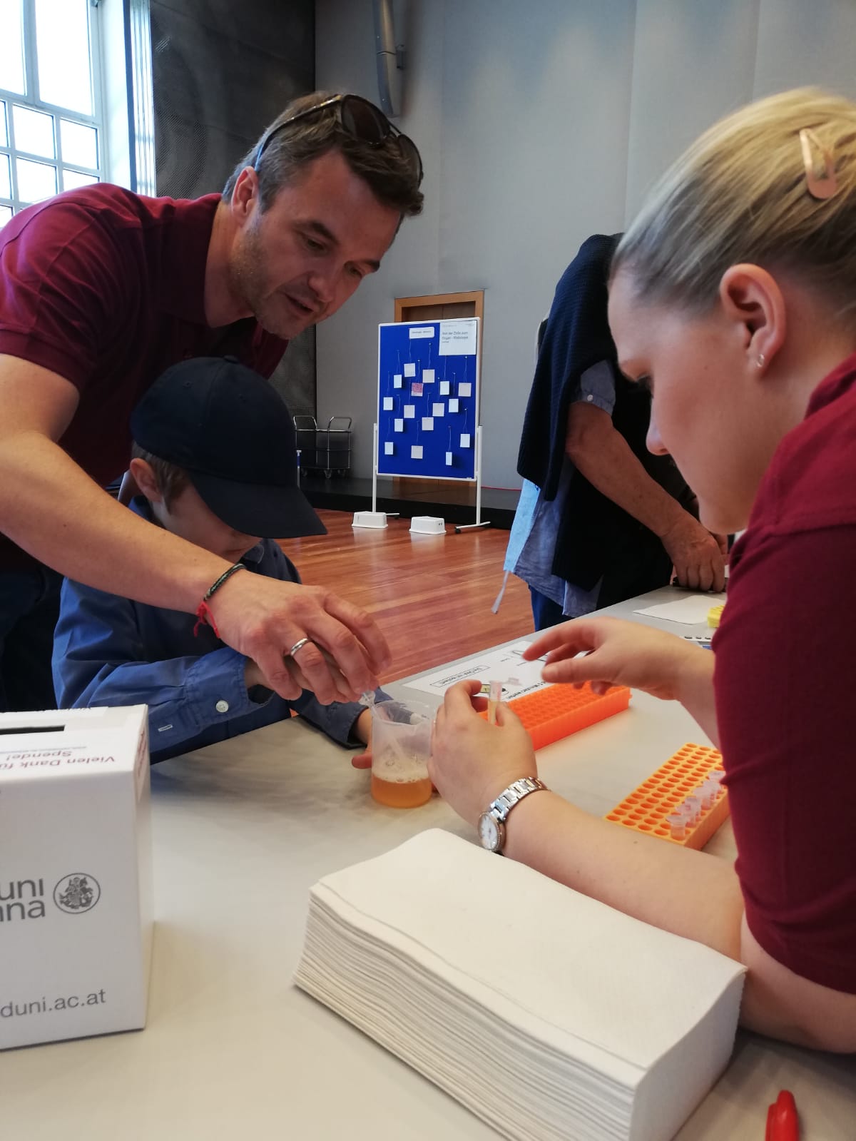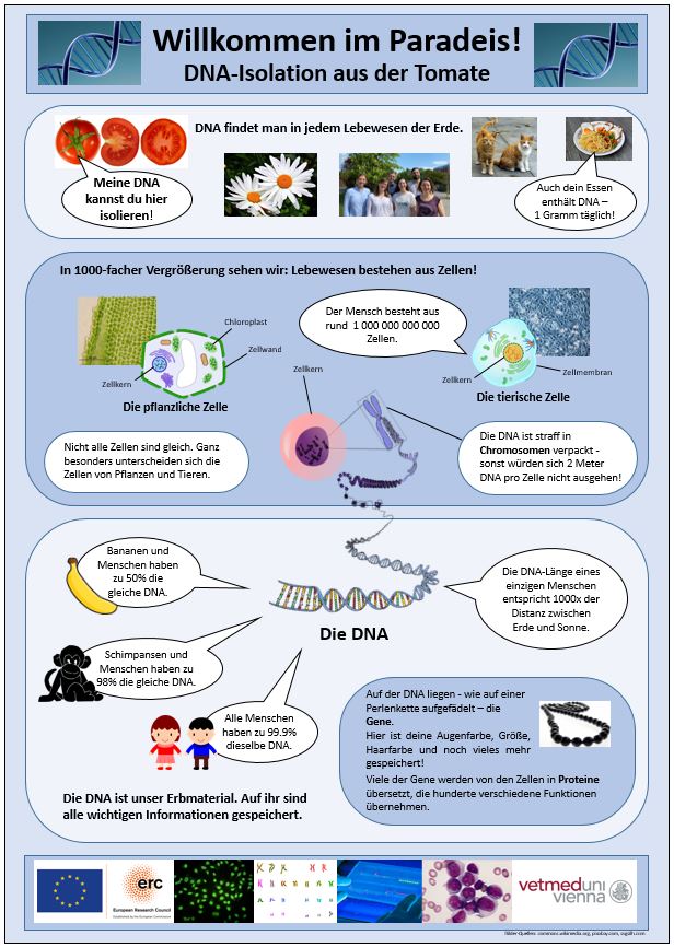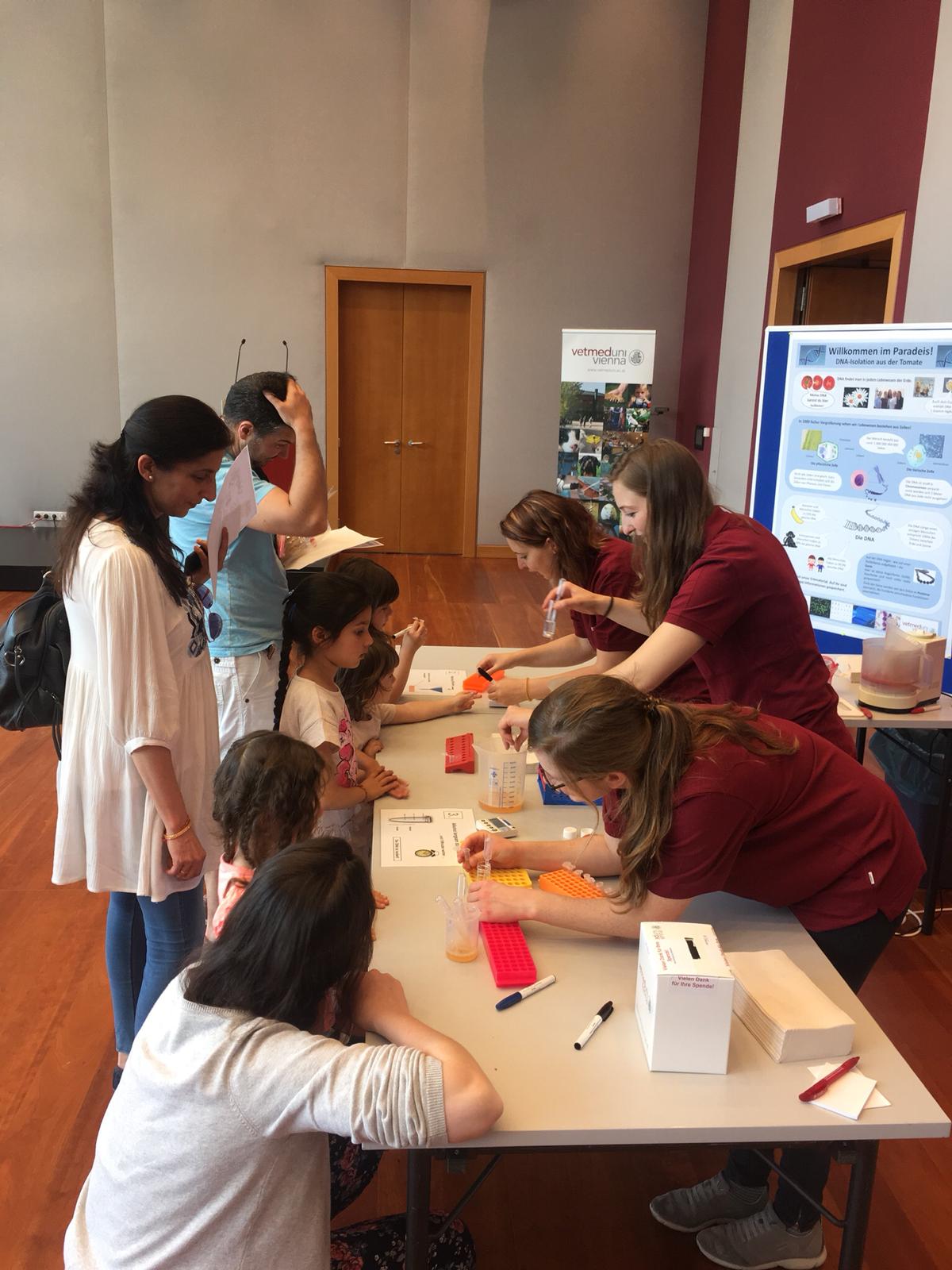 21.5.2022: Today we had a great time at the Open Day at VetMeduni. For a whole day the university was open for visitors to learn about working & studying at Vetmed with lots of exciting things to see and try out. At our stand “Willkommen im Paradeis” younger and older children could isolate DNA from a tomato and learn fascinating facts about the genome. Did you know, that our DNA is 50% identical to the DNA of a banana?