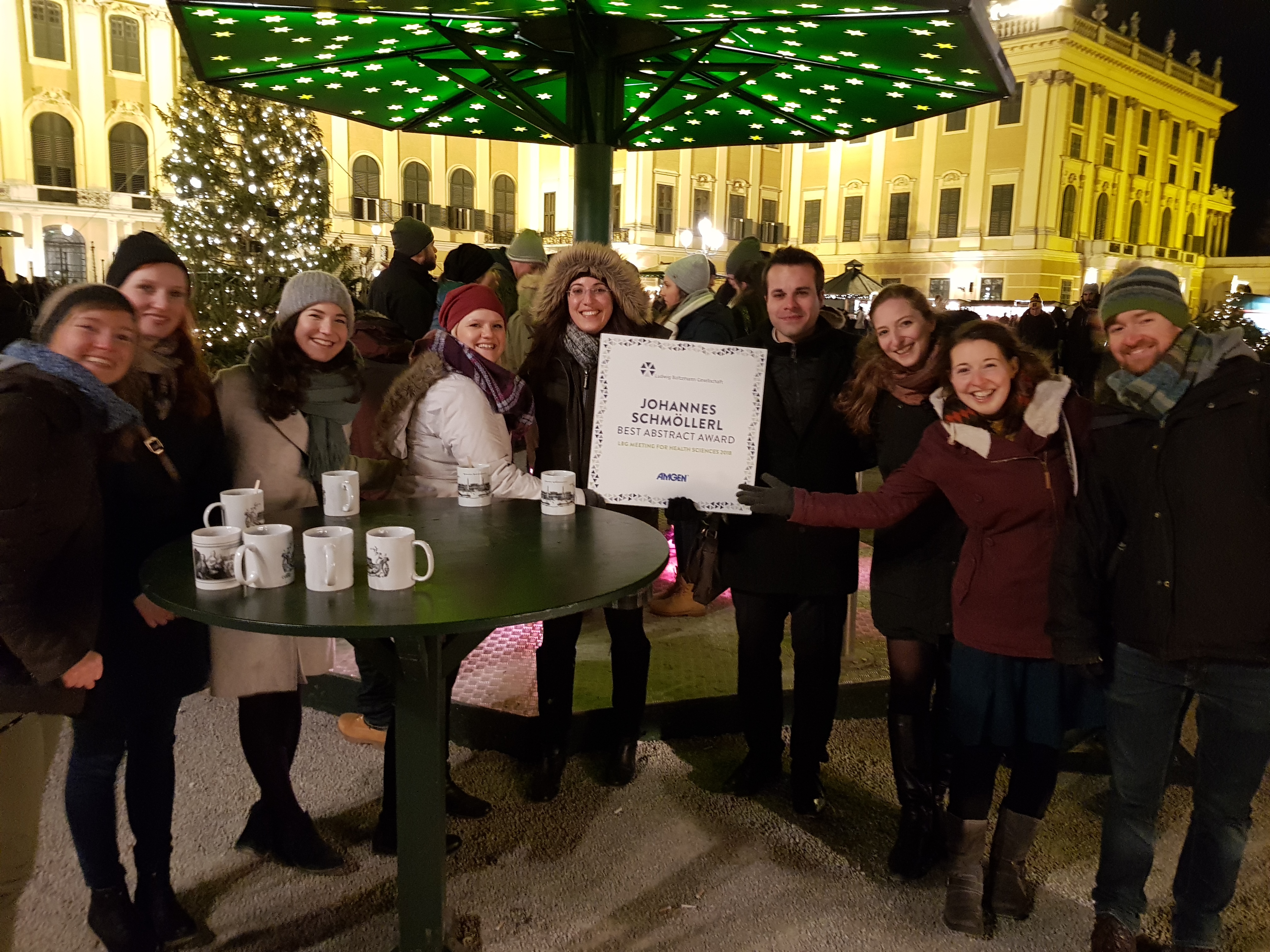 30.11.2018: Congrats Joey for the Best Abstract Award at the Ludwig Boltzmann Gesellschaft (LBG) Health Meeting! Celebrating with Punsch at Christkindlmarkt Schönbrunn.