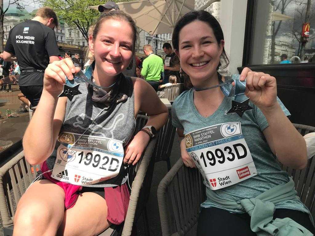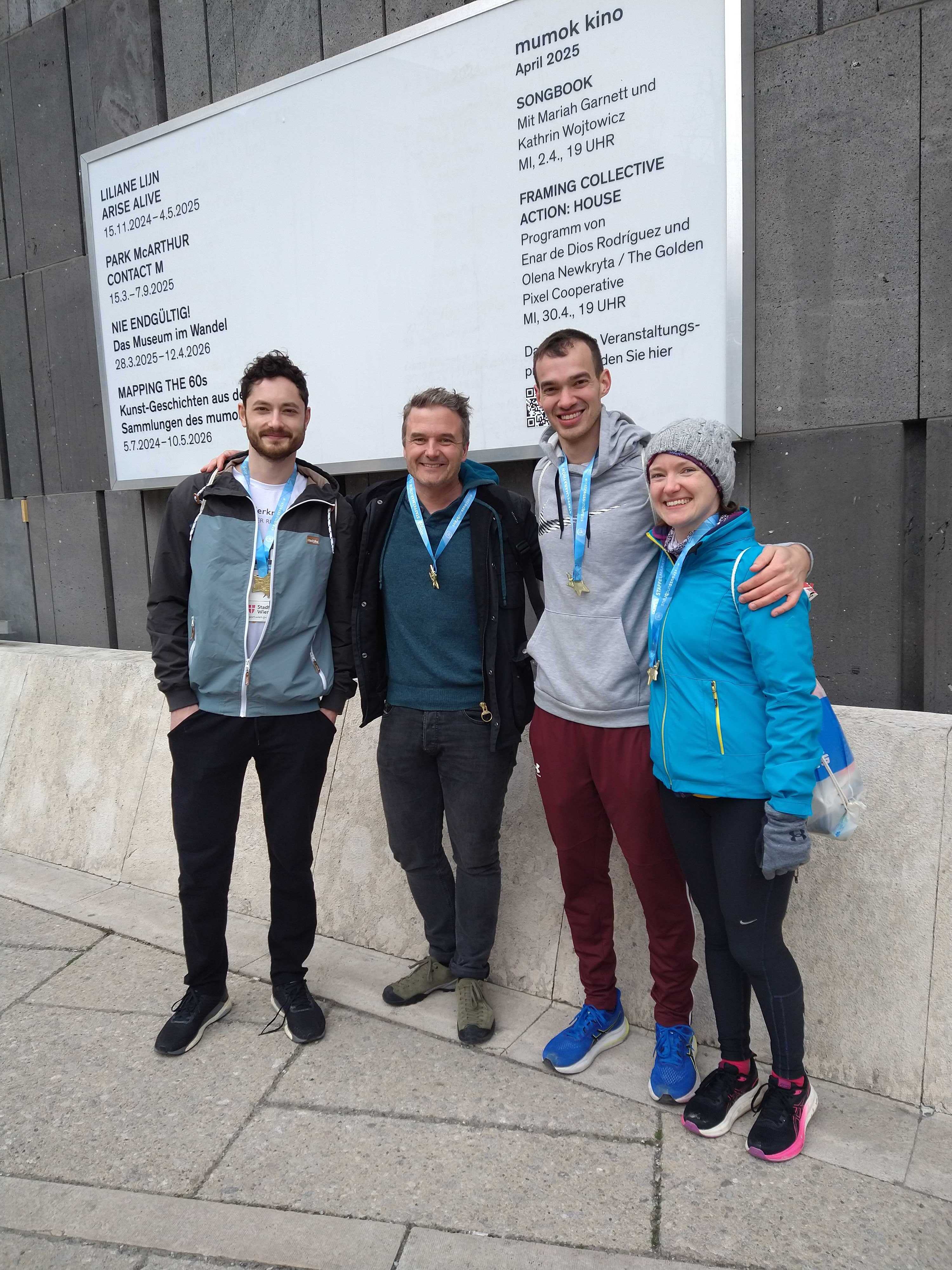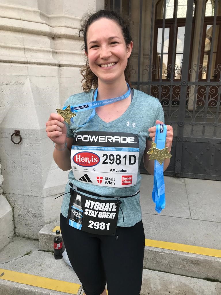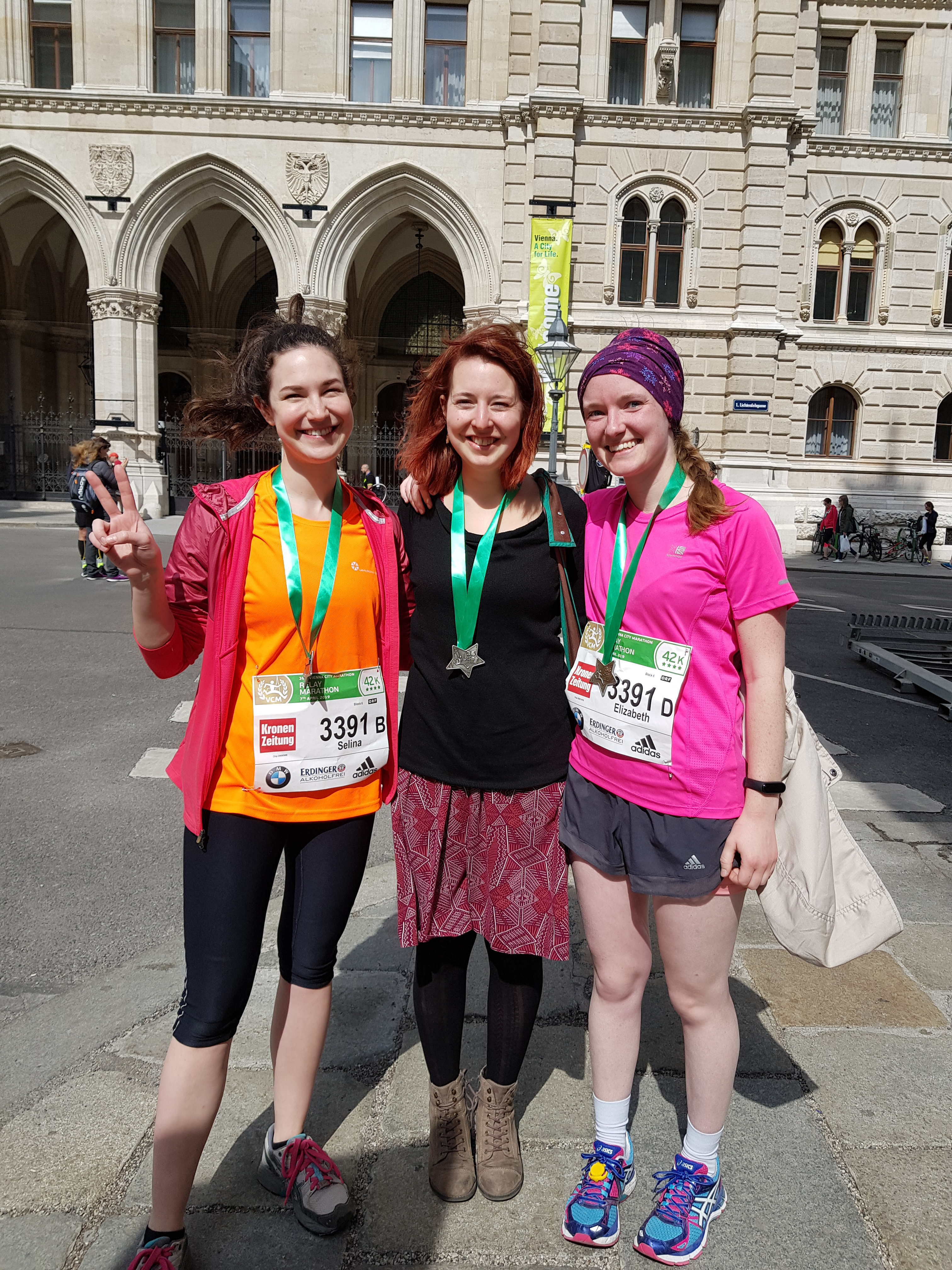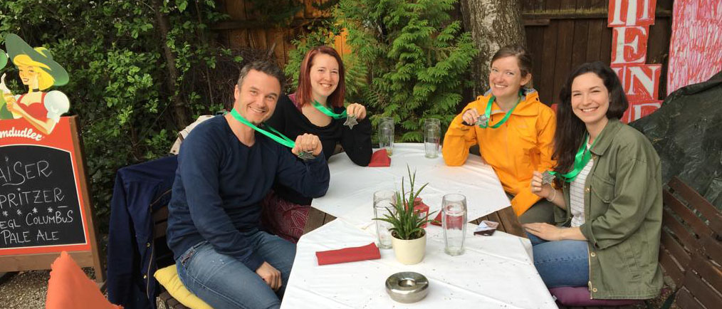 23.04.23: This year we joined the Vienna City Marathon again with one relay team “AMLaufen”. Gabi (15k), Lisa from the Sexl Lab (8.6k), Martin (6.7k) and Selina (11.2k) joined the fun and we were quite happy with our result. 🥳 Afterwards we met up at Café Benno for well deserved food and drinks!