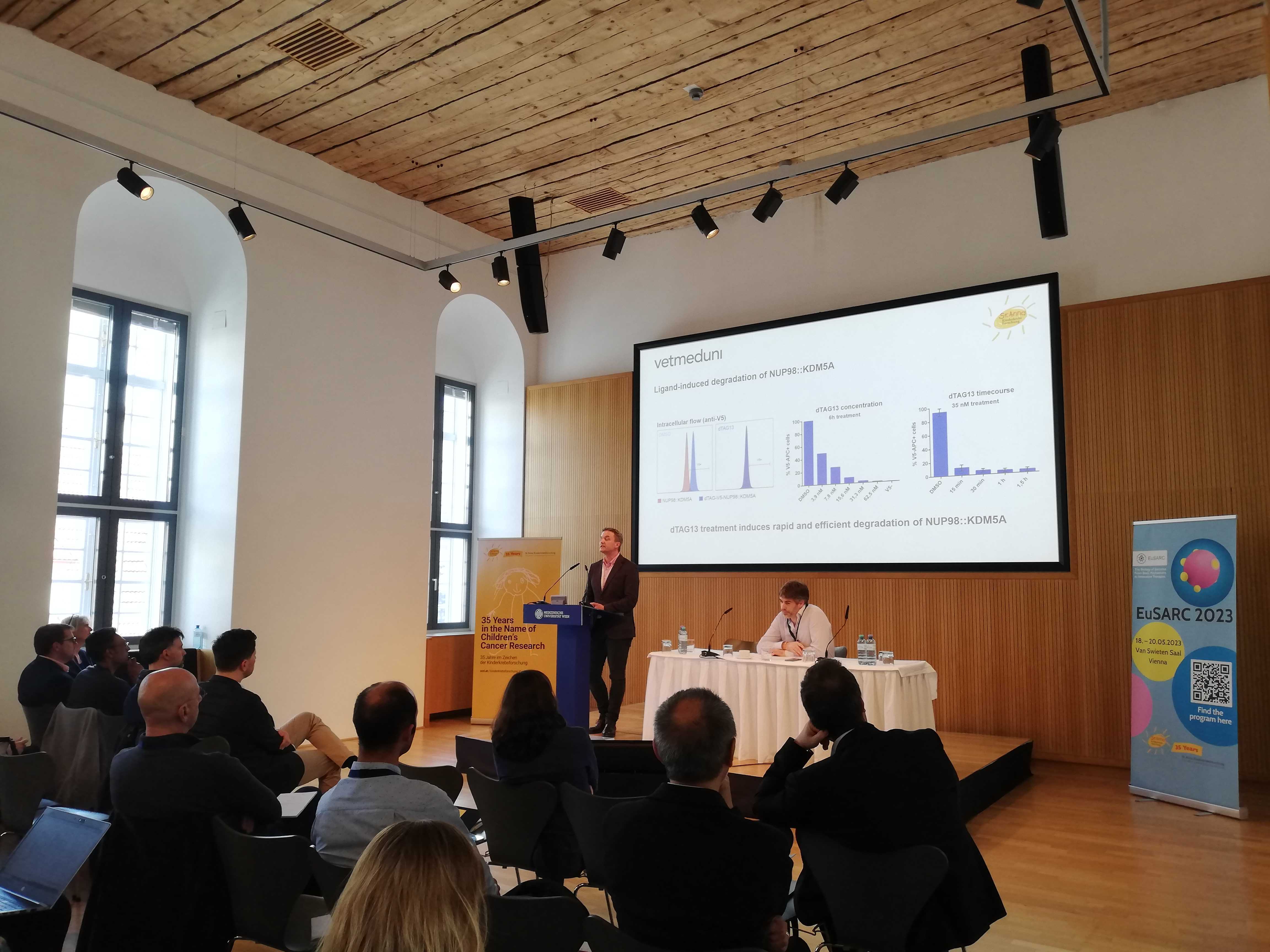 18.-20.05.2023: This year, Florian and Gabi attended EuSarc, hosted by CCRI Vienna, a Europe-wide group of dedicated scientists and clinicians holding regular meetings to bridge the gap between basic and clinical research on sarcomas. Florian gave a great talk and we met lots of highly motivated and nice scientists. Looking forward to future collaborations!