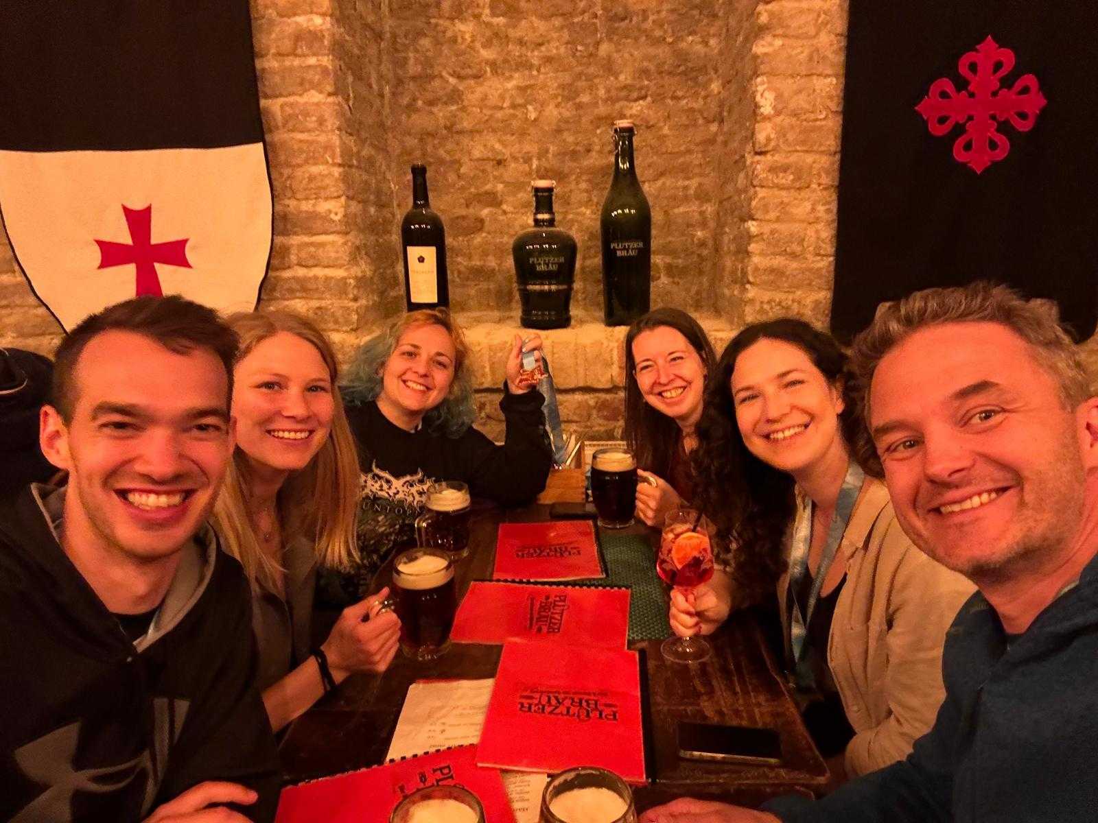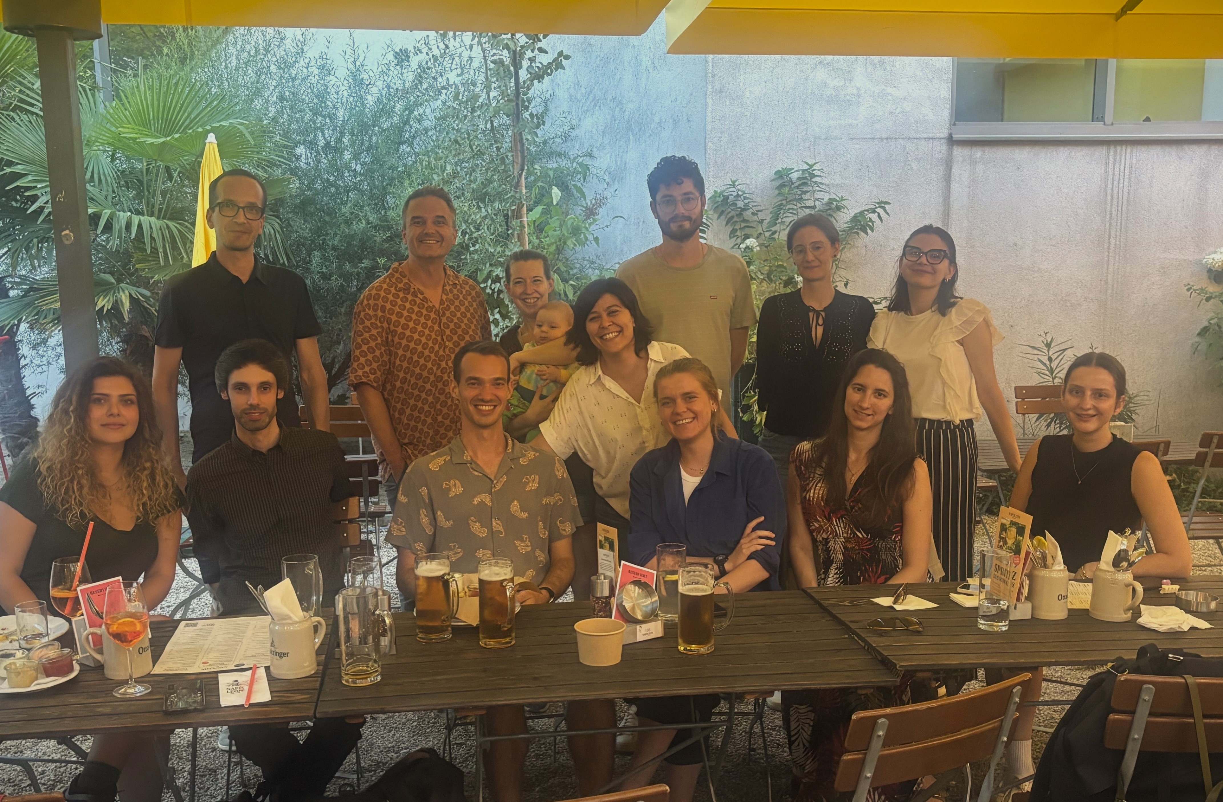 23.07.2025: Time to celebrate! Gabriel and Christina (just look for the two biggest smiles in the middle of the picture) have *both* been awarded the prestigious DOC fellowship from the Austrian Academy of Sciences for their super cool PhD projects!! We cheered to the amazing news Austrian style -at a beer garden! A big well done to both!!