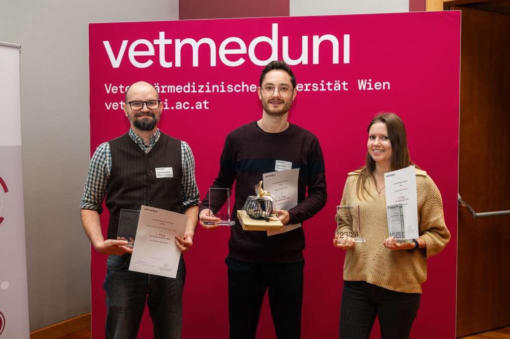 15.01.2024: Big congratulations to our PhD Students -Ludo, Ecem, and Selina- who have won 1st and 2nd place prizes at the annual VetMed awards for Research for their posters that they presented in at least one international research conference in the last year!