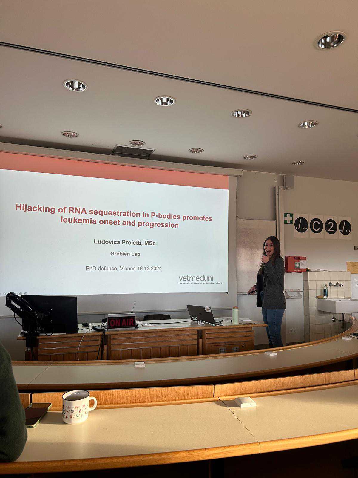 16.12.2024: Huge Congratulations to Dr. Proietti! 🎓✨ Today, we celebrate an incredible milestone: Ludo has successfully defended her PhD thesis! This achievement reflects her hard work, dedication, and passion for advancing knowledge in the role of P-bodies in myeloid cancer. While we’ll deeply miss her as she moves on to new adventures, we’re excited for all that lies ahead for her. Wishing you every success, dear Dr. Ludo Proietti!